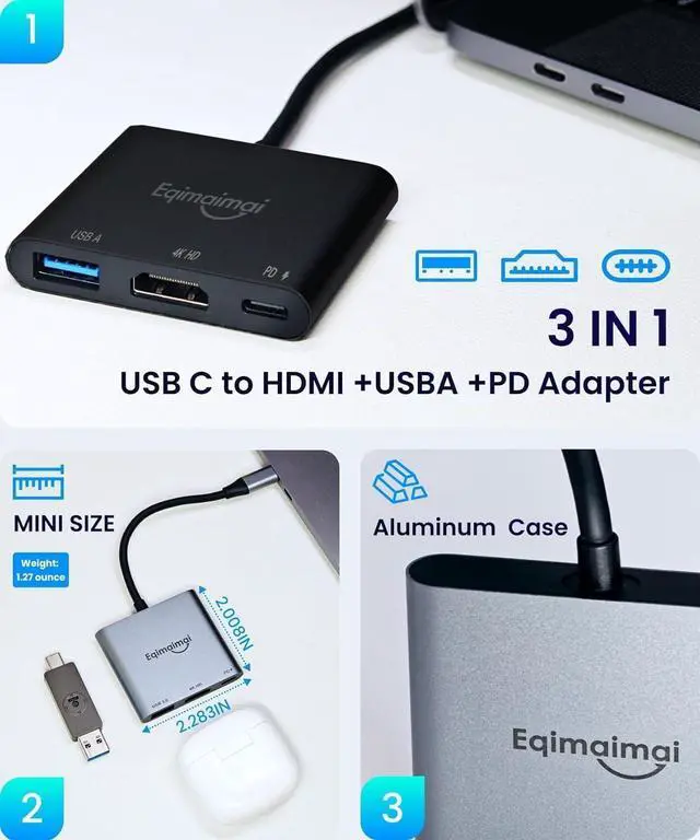 4K120 HDMI 2.1 Port - Realize display output function,support mirroring and expansion mode,the highest resolution is 4K@120Hz,compatible with 2K,1080P,720P,1440P etc,perfect for video streaming/photo editing/presentations, this HDMI to USB-C hub ensures vivid, clear, and stable display on compatible devices