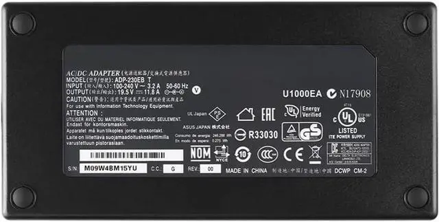 Product Specifications230W Charger AC adapter, Input: AC 100-240v, 50-60Hz, Output: 19.5V 11.8A ,Connector Size: 5.5mm*1.7mm (Please check whether the interface is the same as the original charger interface)