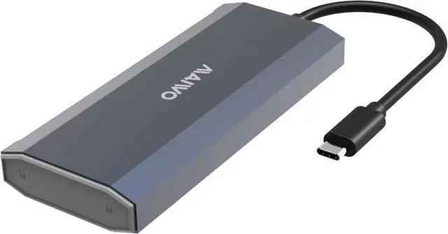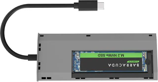 All-in-One Docking Station with SSD Enclosure: Combines a 6-port USB-C hub with an integrated M.2 NVMe SATA SSD enclosure, supporting drives up to 2280 size for expanded storage and connectivity