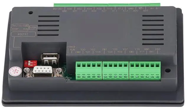 Memory and Compatibility: Designed for ARM9 CPU with 600MHz processing speed, this HMI PLC Touch Screen boasts 8MB DDR2 memory and 16MB NAND FLASH storage. It supports 38.4KB download speed, ensuring seamless compatibility with various PLCs and smart controllers with comm port, including FX3U-20 40 48MRT, GX Developer, and GX Works 2 programming software. Its versatile design makes it a reliable choice for industrial applications.