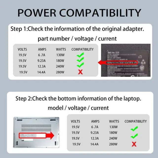 Compatible with Dell P/N J211H, Y044M, U896K, PA-9E, PA9E, 330-3514, LA240PM180, 7XCR6, 07XCR6, DA240PM180, 0RYJJ9, RYJJ9, 8N2T2, 074X5J, WW4XY, 330-4342, J938H, PA-1151-06D, 320-2746, D1404, D2746, N426P, 330-5829, R940P, 330-7842, 330-5830, 0WW4XY, 74X5J, TW1P0, F0G4K, N3834.FWCRC C3MFM 6RTJT Y047M GA240PE1-00 330-4128 450-18931