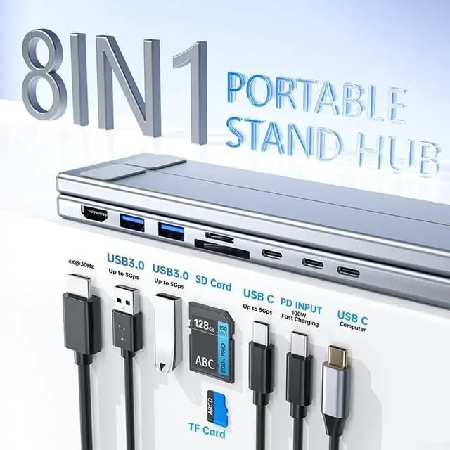 VERSATILE 8-IN-1 CONNECTIVITY: Transform your laptop with comprehensive port expansion including SD/TF card readers, USB 3.0 ports, and output supporting 4K resolution (3840x2160@30Hz), eliminating the need for multiple adapters and creating a streamlined workspace.