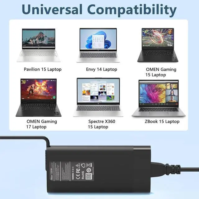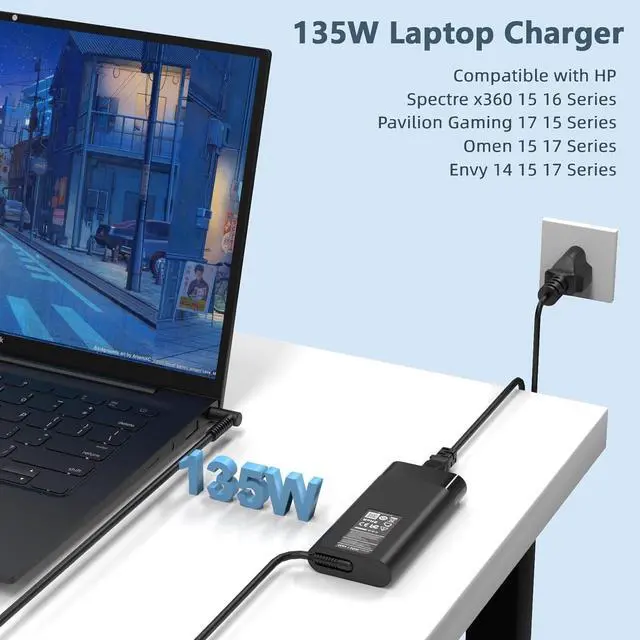 SafetyThe 135W laptop charger AC Adapter suitable Compatible with hp has been made of high-quality materials, power cord has multiple protections: overcharge protection; Overvoltage protection; Overheating protection; Overcurrent protection; Short circuit protection; Lightning resistant laptop charger. You won't get stuck while playing games, giving you a smooth and beautiful gaming experience. This charger is suitable for various occasions, ensuring that your electronic devices always run efficiently