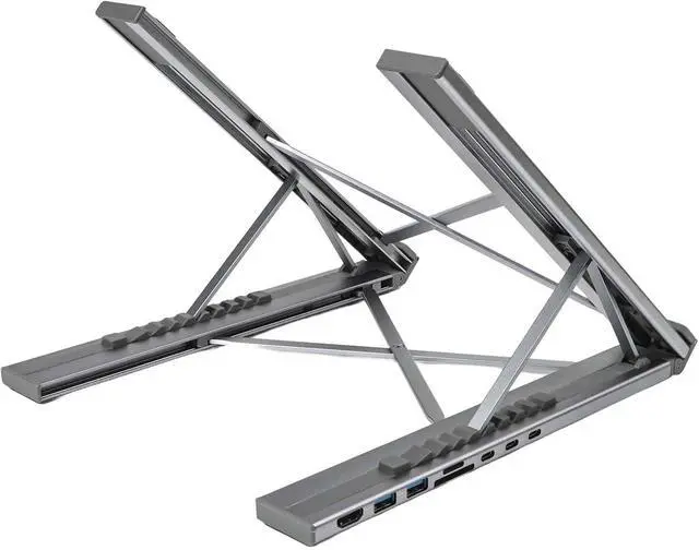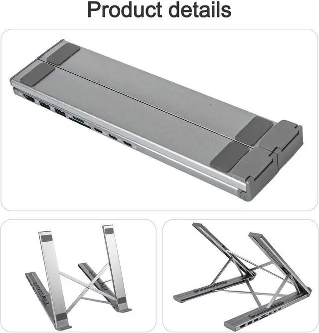 Ergonomic Laptop Stand: This docking station doubles as a laptop stand, promoting better posture and reducing strain on your neck and back during long working hours.