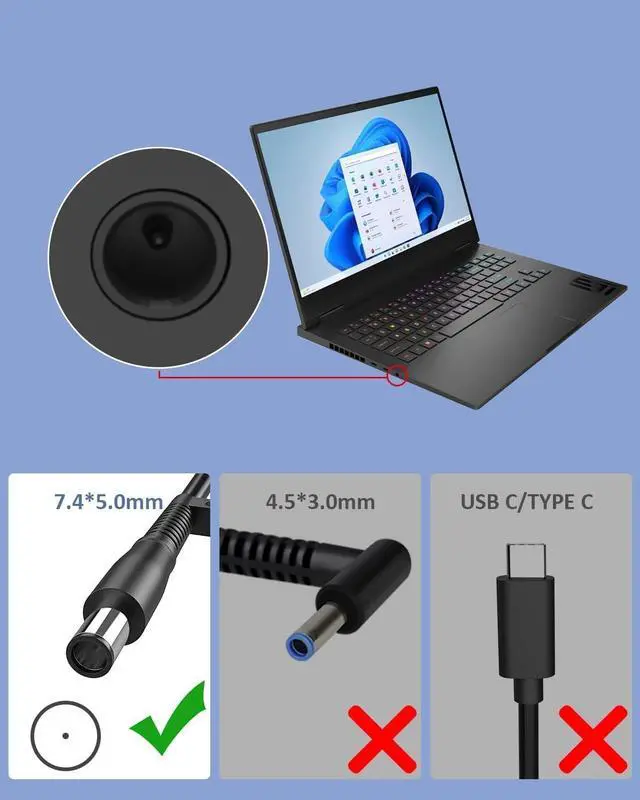 POWER SPECS Output Max: 230W ~ 19.5V 11.8A for HP Laptop AC Adapter Power Replacement. Input Volt Range: 100-240V ; Connector Size: 7.4*5.0MM