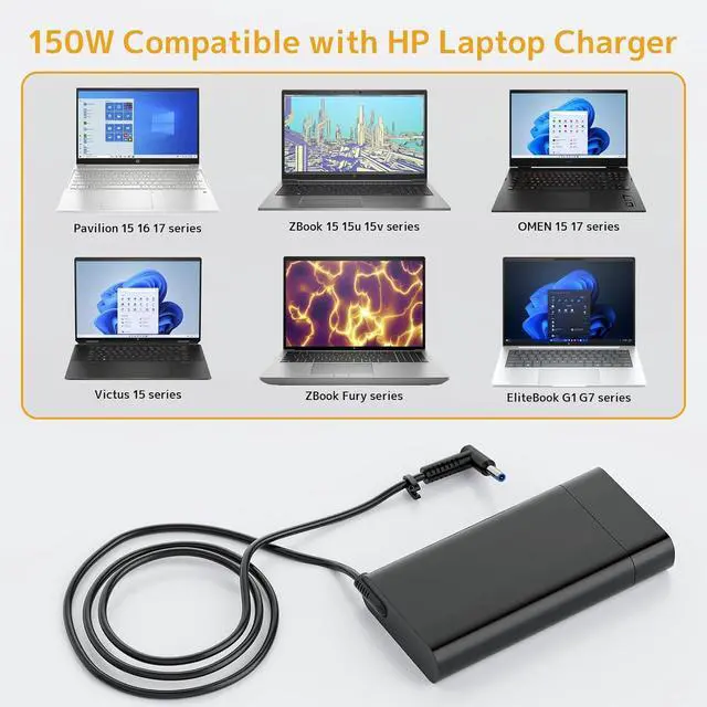 4.Compatible Models: Compatible with HP 150W Laptop Charger Omen 15 5100 5200; 15-5010nr 15-5210nr 15-5220nr; 17-an110nr, 17-w033dx, 17-w053dx, 17-w253dx; 15 5000, 5100, 5200; 15-ax043dx; Omen Laptop 15, 17 Inch, 15-ax, 15t-ax, 15-ce, 15t-ce, 17-an, 17t-an, 17-w, 17t-w; EliteBook 1050 G1, 855 G7, 1050 G1; Notebook PC; Victus 15; Spectre x360 15, 16, 15-ch, 15t-ch, 15-df, 15t-df, 15-eb, 15t-eb, 16-f, 16t-f