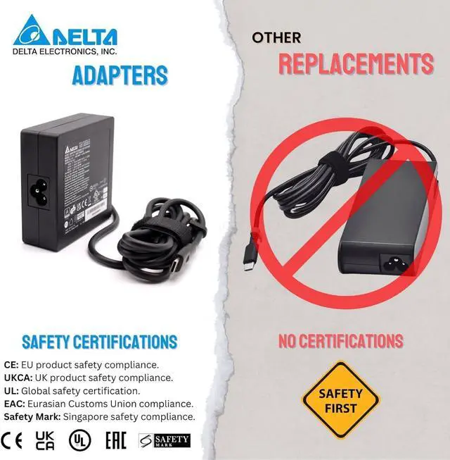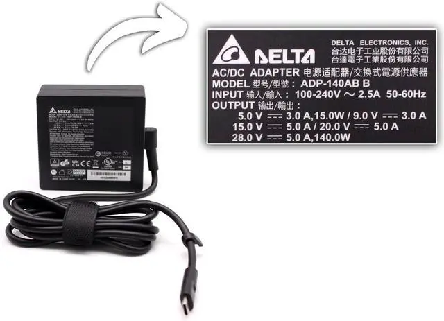 Brand new Delta adapters tested and securely packaged for listed laptops only. 140W USB-C power adapter charger intelligently recognizes your device. Compatible with MacBooks, Lenovo, HP, Dell laptops, and all USB-C charger devices, laptops, and Android phones. Note: Same adapters may have different part numbers. If exact part number unavailable, compatible part supplied.
