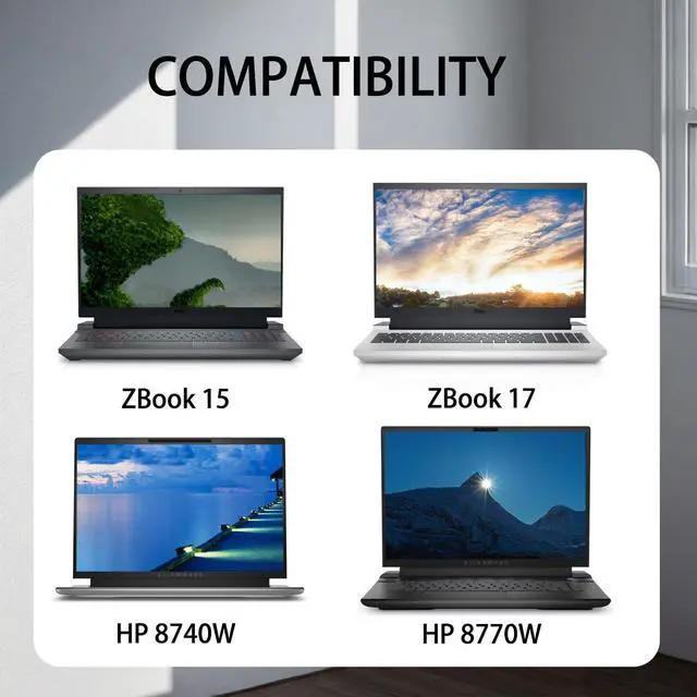 COMPATIBILITYThis product has been tested and works with the following and more HP 200W Notebook PC models: HP 15 17 15 15t 15u 17 17t 15-ce000 15-dc000 17-an000 15-cx0000 ZBook 15 G5 ZBook 15 G4 ZBook 15 G3 Series,HP ZBook 15 17 G3 G4 G5 G6 G7 SeriesHp Pavilion Gaming 15 16 17 Series, Hp ZBook 17 G3 (V1Q00UT), ZBook 17 G3 (V1Q04UT), ZBook 17 G3 (V1Q05UT), ZBook 17 G3 (V1Q07UT), ZBook 17 G3 (V1Q08UT), ZBook 17 G3 (X9T88UT) ZBook 17 G3 (M9L94AV) ZBook 17 G3 (T7V61ET) ZBook 17 G3 (T7V62ET) ZBook 17 G3 (T7V65ET) ZBook 17 G3 (T7V67EA).