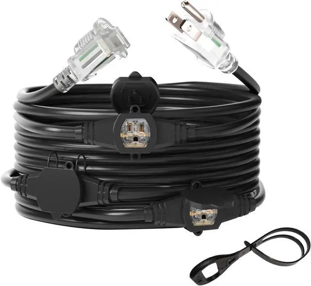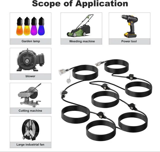 [Equally spaced cable outlets]This new extension design will allow you to plug more devices into a single cable. Each cable outlet is designed with a black cap and can be used outdoors in the garden.