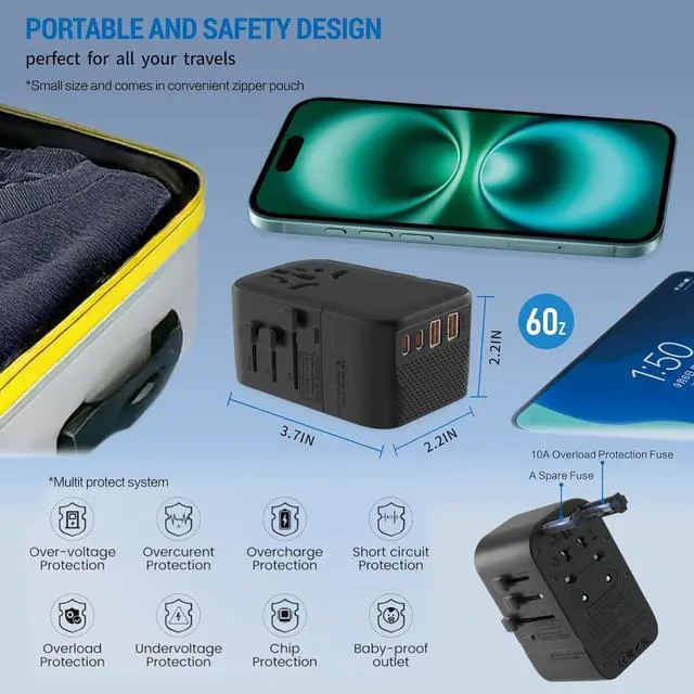 [SAFETY CERTIFICATIONS] - FCC, CE and RoHS certified safety system with 1 main fuse and 3 spare fuse, if theres abnormal usage, The short-circuit and surge protection systems automatically shut down the power complete protection and your dev