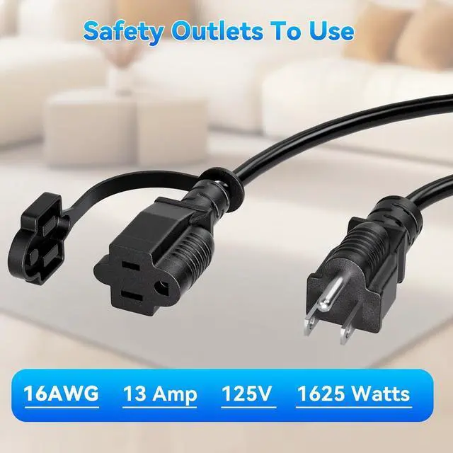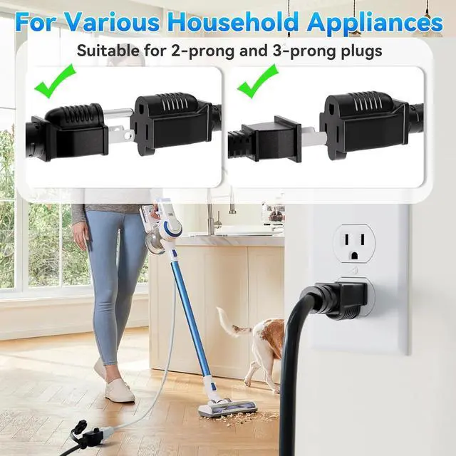 3 Prong Granded Power Cord - Suitable for appliances that require a 3-pin male-to-female power connector. Perfect for your Vacuum cleaner, sweeper, humidifier, juice extractors and other household electronics.