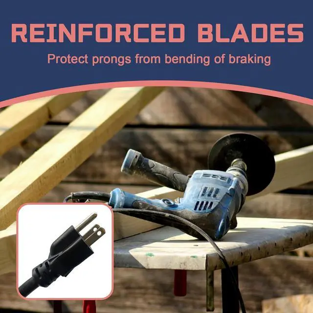 3 Prong Grounded Extension Cord - Grounded plug for adding safety. Reinforced blades protect prongs from bending or breaking.