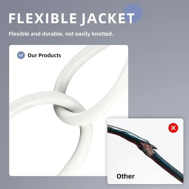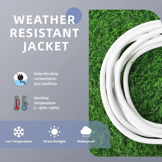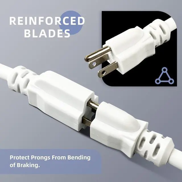 Safe Cable- UL Listed, 3 prong grounded plug for added safety. Reinforced blades protect prongs from bending or breaking. Remain flexible and tangle-free under all weather conditions and wouldnt become stiff or crack in cold weather.