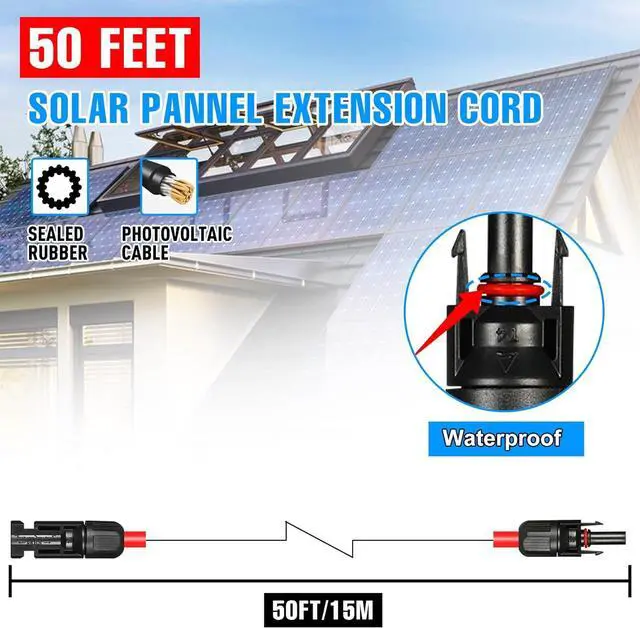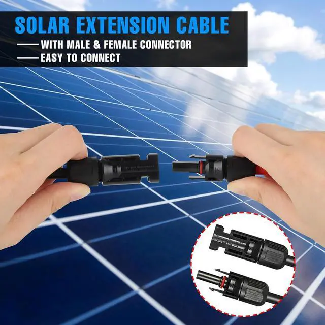 Easy & Convenient--- Afurkuot 50 feet solar panel cables come with male and female connectors, which have a stable self-locking system and are easy to insert and withdraw. No tools are required for installation or removal. Only one end needs to be connected to the solar panel and the other to the solar charge controller.