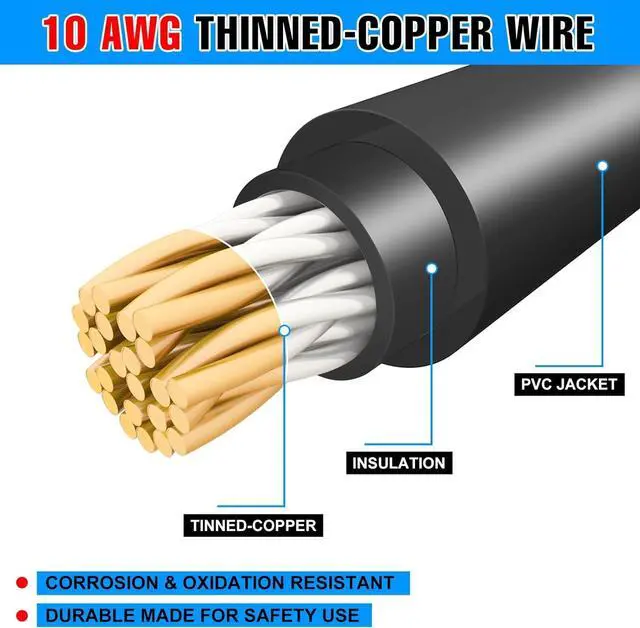 IP67 Solar Extension Cable--- 10 AWG 50 feet solar cable wires are IP67 waterproof, which is good for outdoor use. No need to worry about the rainy, snowy, foggy days. Waterproof, dustproof.