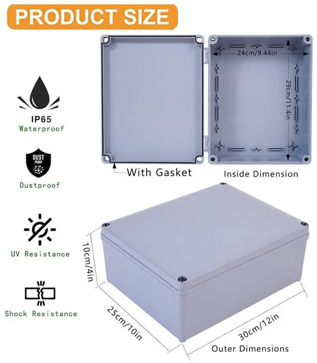 Our Waterproof junction box is made of high-quality ABS plastic, which is very lightweight, heat-resistant, wear-resistant, corrosion-resistant, not prone to fading, durable and sturdy,effectively block splashing water, rain, dust, snow, oil, UV, etc., can be widely used for both indoor and outdoor applications.