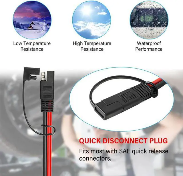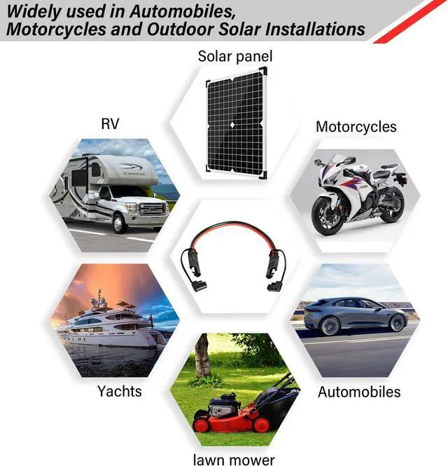 [Widely Application] - The solar panel extension cable fits most batteries and chargers with SAE quick release connectors, no tools required, quick installation and disconnection of portable generators. It Is Widely Used in Solar panel / Motorcycles / Automobiles / RV / ATV / Trolling Motor and Outdoor Solar Installations.