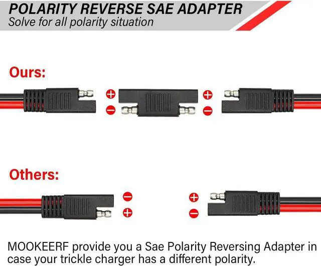 [SAE Polarity Reverse Adapter] - The Package includes 2PCS SAE to SAE polarity reverse adapters, different brands of solar panel connectors may have different polarities, please make sure that the polarity is correct before connecting.