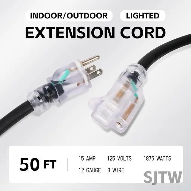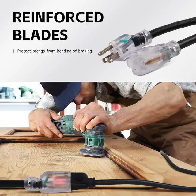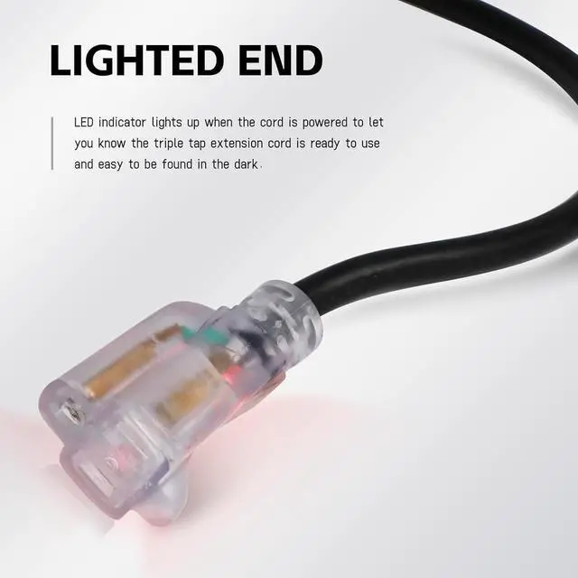 LED Lighted End for Convenience: Equipped with an LED indicator, the lighted end glows when powered, making it easy to locate in the dark and confirming when the cord is ready to use. Perfect for nighttime projects or outdoor setups