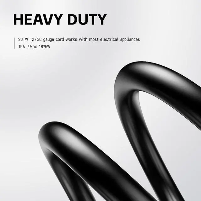 Safety and Durability Guaranteed: UL Listed for safety, this cord includes a 3-prong grounded plug and reinforced blades to prevent bending or breaking. Its tangle-free design remains flexible in all weather conditions, ensuring it wont stiffen or crack in cold temperatures