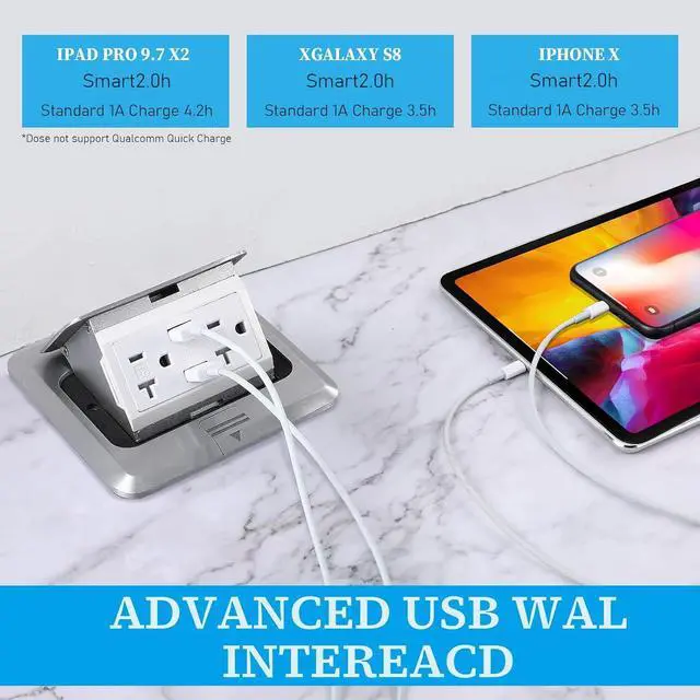 Versatile Design: This pop-up floor outlet is equipped with a 20-amp tamper-proof outlet and two USB charging ports to meet your power and device charging needs.