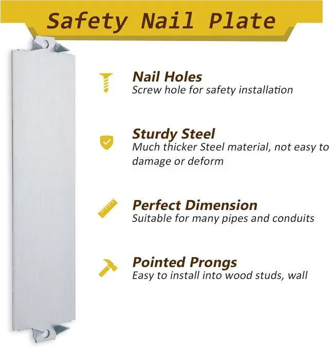 Functional Protection: Our nail plate is specifically designed to safeguard wires, cables, and plastic plumbing running through wooden posts. It effectively prevents electrical fires caused by accidental drilling or nailing, ensuring a safe passage and reducing safety risks.