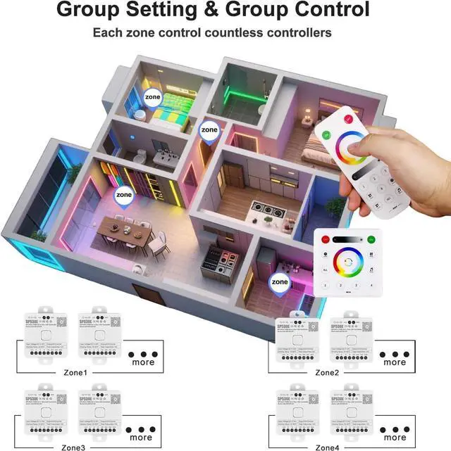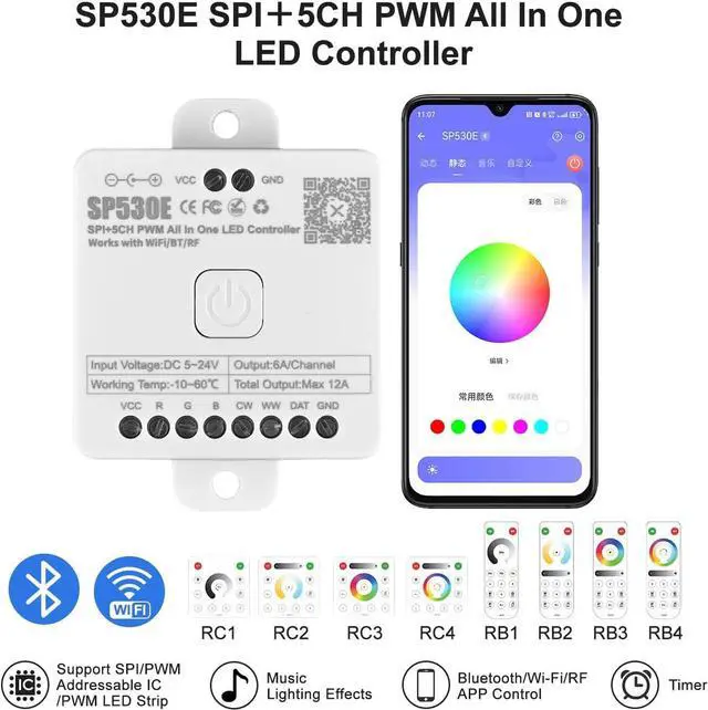 SP530E WiFi Blue-Tooth LED Controller Alexa/Google 12-in-1 LED Controller Support PWM/SPI Single Color CCT RGB RGBW RGBCCT IC LED Strip WS2811 WS2812 Etc