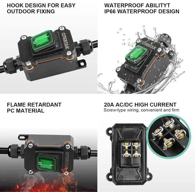 Excellent waterproofing: This 220V inline switch has IP66 class waterproof design and excellent waterproof performance. Proven to be waterproof even in extreme rainy conditions! Perfect for use as outdoor switch for patio and garden.