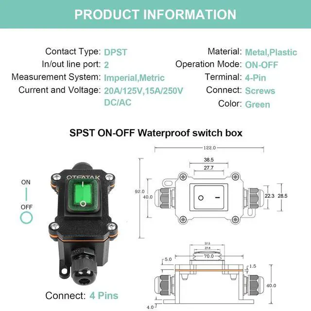 Wide Scope of Application: With high temperature resistant shell and high current switch, our heavy duty switch can be used in high power electrical appliances, outdoor electrical appliances, equipment, lights. Use it to give your distressed heavy duty device a new life.