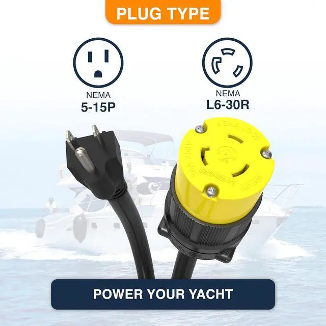 Output Connector: NEMA L6-30R (Female), Twist Locking L630C - 220v to 250V, 30A (Maximum draw current at 15 Amps)