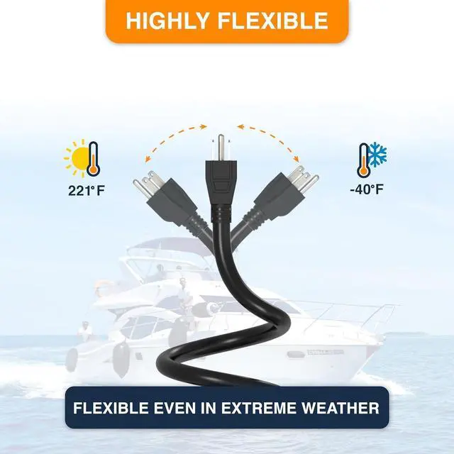 MAX POWER - Full 15 Amp - 1875 Watts 125 Volts AC, 14 AWG SJTW Wire (Rough Service Weather Cord)