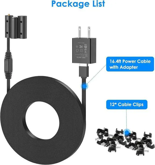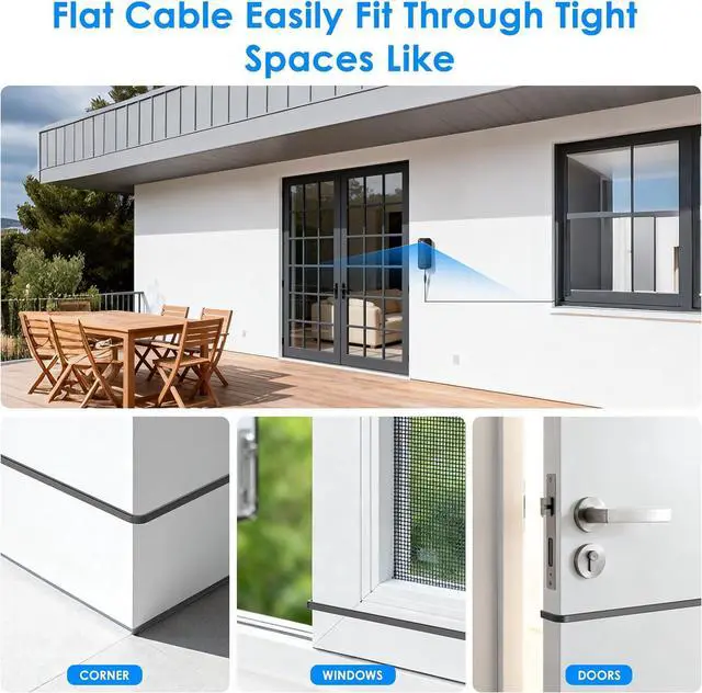 16.4ft Flat Cable for Flexible SetupWith a 16.4ft/5m ultra-long flat cable, you can easily place your Blink camera or doorbell anywhere even far from power outlets. The slim, flat design allows the cable to pass through windows or doors without affecting waterproofing or sealing, keeping your setup neat and secure.