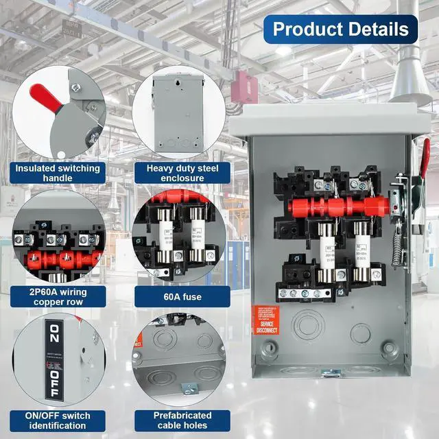 2P FUSE SAFETY SWITCH: This is a 30A, 240V, 2-phase safety switch with a 30A overload fuse; it can quickly fuse and disconnect the switch to protect the power supply and equipment safety and prevent accidents