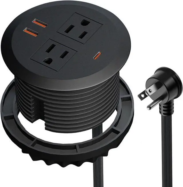 Super easy installation - Insert the desktop power grommet into the 3-1/8-inch desk grommet hole,rotary locking ring