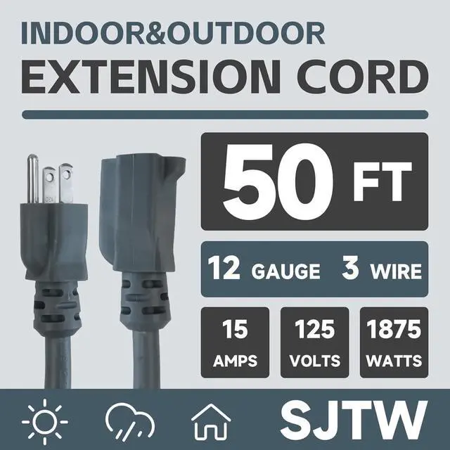 Heavy Duty Performance - The 12/3 heavy duty extension cord boasts a robust 12 gauge 3 wire heavy-duty construction with pure copper wire, supporting up to 15 amps, 125 volts, and 1875 watts. Ideal for powering high-demand appliances and tools with reliability.