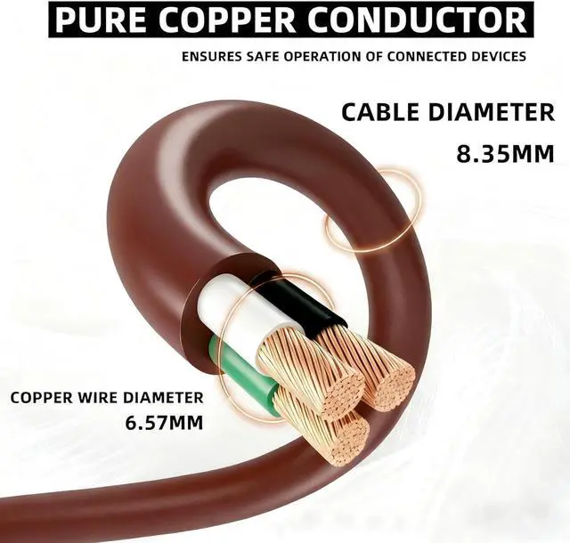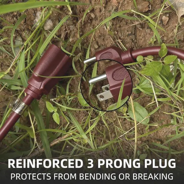 SUPERIOR PERFORMANCE: Crafted with copper and a robust vinyl sheath meeting global standards, this cord boasts low resistance, minimal power loss, moisture resilience, flame retardancy, and dependable slip resistance. The 3-prong grounded plug enhances safety, ensuring durability and flexibility for convenient storage.