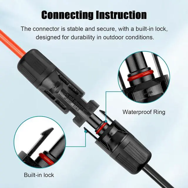 [EASY TO OPEN&LOCK] Both ends with solar connector (male to female), which is convenient to install and the built-in lock is very stable to protect conductor from water and dust.
