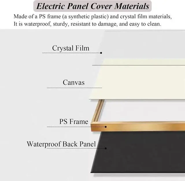 Electric Panel Cover Materials : Made of a PS frame (a synthetic plastic) and crystal film materials, meter box decoration is waterproof, sturdy, resistant to damage, and easy to clean, ensuring long-lasting use