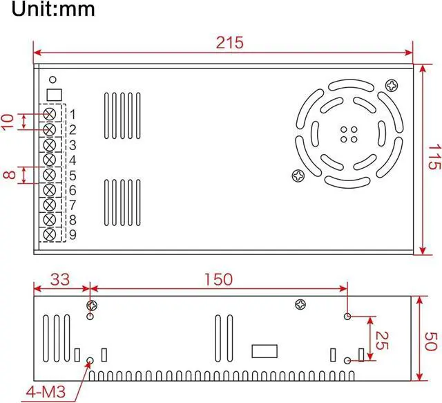AC input voltage range: Switch Selection 100V-120V AC or 200V-240V AC; Product Weight: 2.4 lb; Product Size: 215x115x50mm / 8.46x4.52x1.96 inches