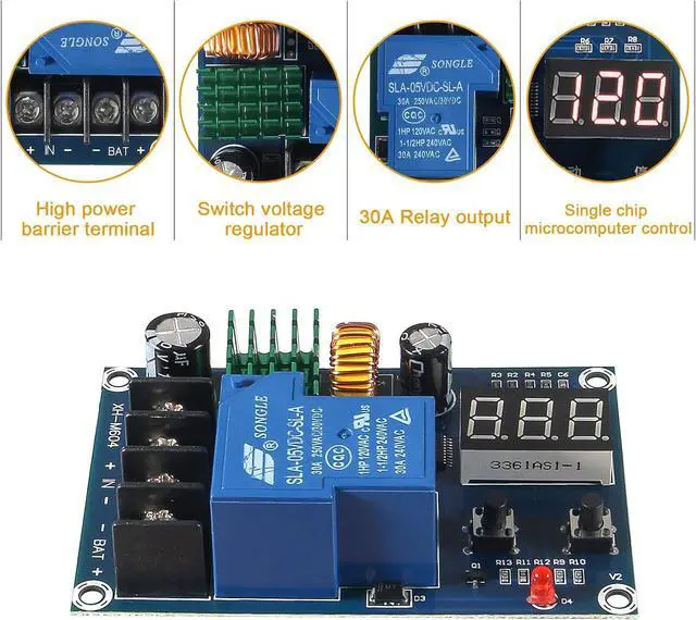 Easy to Use: On-board momentary push button to set the charging initiation voltage and charging stop voltage. Input Voltage:DC 6-60V (max 80V), Display Precision:0.1V, Control Precision:0.1V, Output Type:direct output