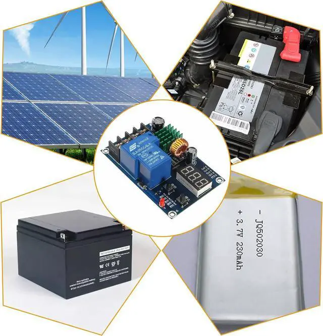 Diverse Usages: Battery charging control module is suitable for solar cells, new energy batteries, electric vehicle batteries, lithium-ion batteries, polymer batteries, lead-acid batteries, nickel-cadmium batteries, nickel-metal hydride batteries.( Maximum support battery 48V), use in home charger, solar energy, wind generator and more