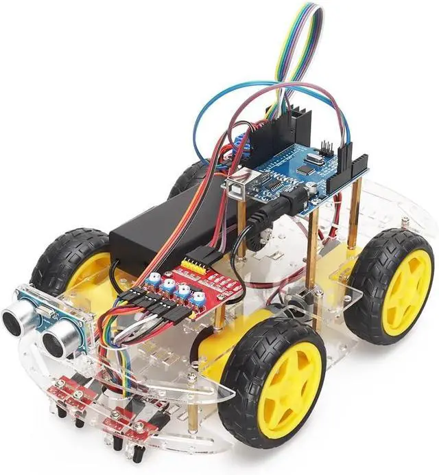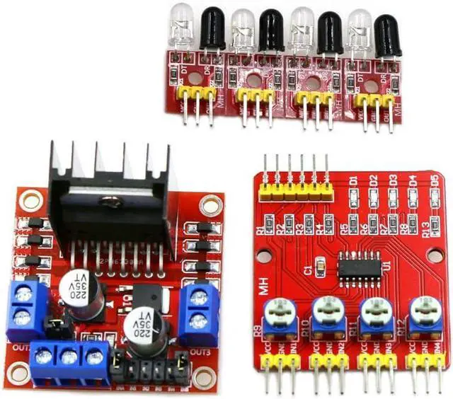3. The infrared signal detection module uses four infrared light pairs to detect the black lines for tracking.