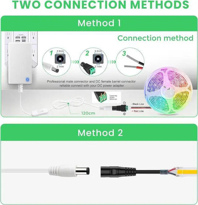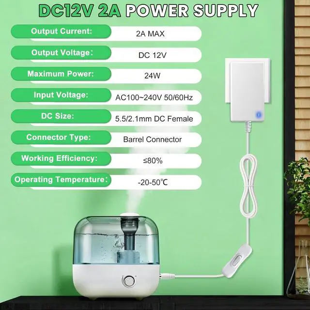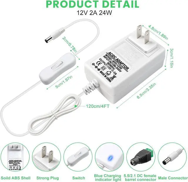 Input and Output: 50/60Hz, 100240V AC input, DC 12V 2A output, 24W max LED power supply with an on/off switch. You dont need to unplug the LED power adapter frequently, making it very convenient to use