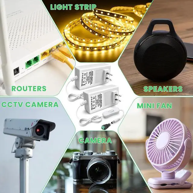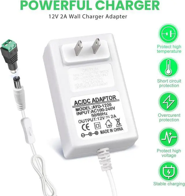Wide Application: Converts 100240 V AC to 12 V DC. This LED power supply transformer is widely used for LED strip lights, wireless routers, LED strings, hubs, fresh water bilge air pumps devices, infrared array illuminators, digital photo frames, security cameras, and audio/video power supplies. Please make sure the device is 12 V and the total wattage does not exceed 24 W