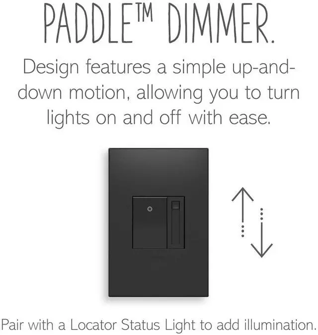 The adorne Paddle Dimmer Switch is a beautifully inventive solution to total lighting control turn lights on and off with a simple rocking motion, or slide to dim. Time to install: 15 minutes or less.