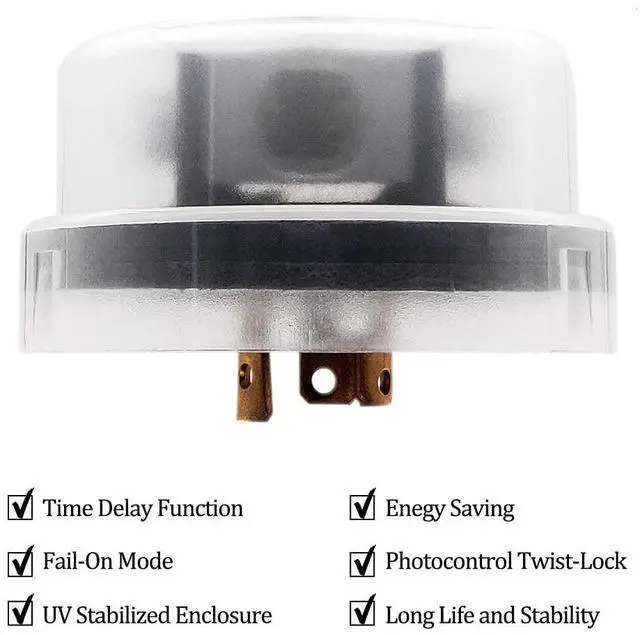 TIME DELAY FUNCTION - Works with standard NEMA twist lock receptacles commonly found in barn or dusk to dawn type post lights. A built-in time delay function prevents false triggers such as car headlights, lighting, or other temporary light source.
