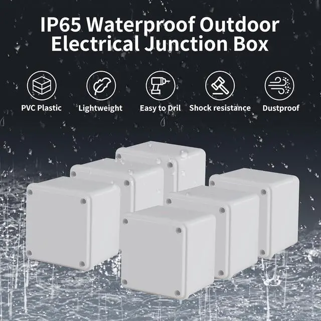 IP65 Waterproof RatingOur Waterproof junction box is made of high-quality pvc plastic, which is very lightweight, heat-resistant, wear-resistant, corrosion-resistant, not prone to fading, durable and sturdy,effectively block splashing water, rain, dust, snow, oil, UV, etc., can be widely used for both indoor and outdoor applications.