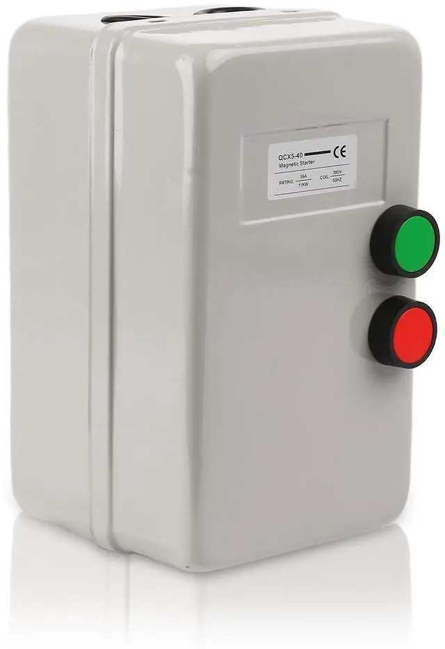 SPECIFICATION: Switch type: Button Switch; Control circuit voltage: 220-240V; Working circuit voltage: 220V/380V; Working current: 25-45AMP; Maximum power <5.5KW; 15HP single-phase magnetic starter is only suitable for other motors. (The factory default is 3-phase connection mode, please switch to single-phase connection mode under the guidance of professional electrical engineers.)