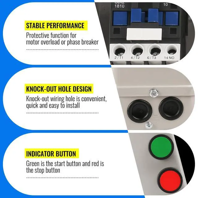 HIGH QUALITY: The magnetic motor starter is made of high-quality housing and durable contactor with button switch for easy operation. Great powerful, built-in overload protection, intelligent protection, stable performance, and 24-hour motor protection. It also provides protection from workshop dust.