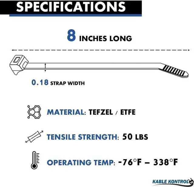 Premium Quality: Kable Kontrol Tefzel cable ties are made from durable ETFE for superior resistance to chemicals, UV, and extreme temperatures.